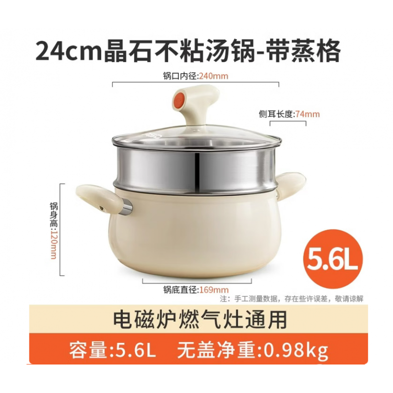 Non-stick Soup Noodle Pot with Steamer Basket