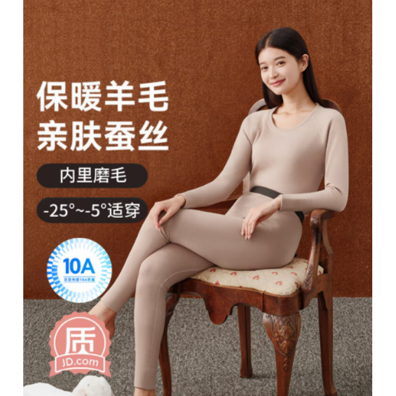 Silk wool fleece-lined thick women's thermal underwear set